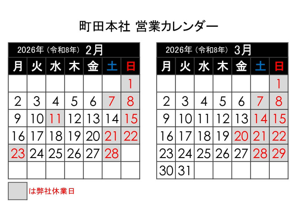 ※オンラインショップの営業カレンダーとは異なりますのでご注意ください。