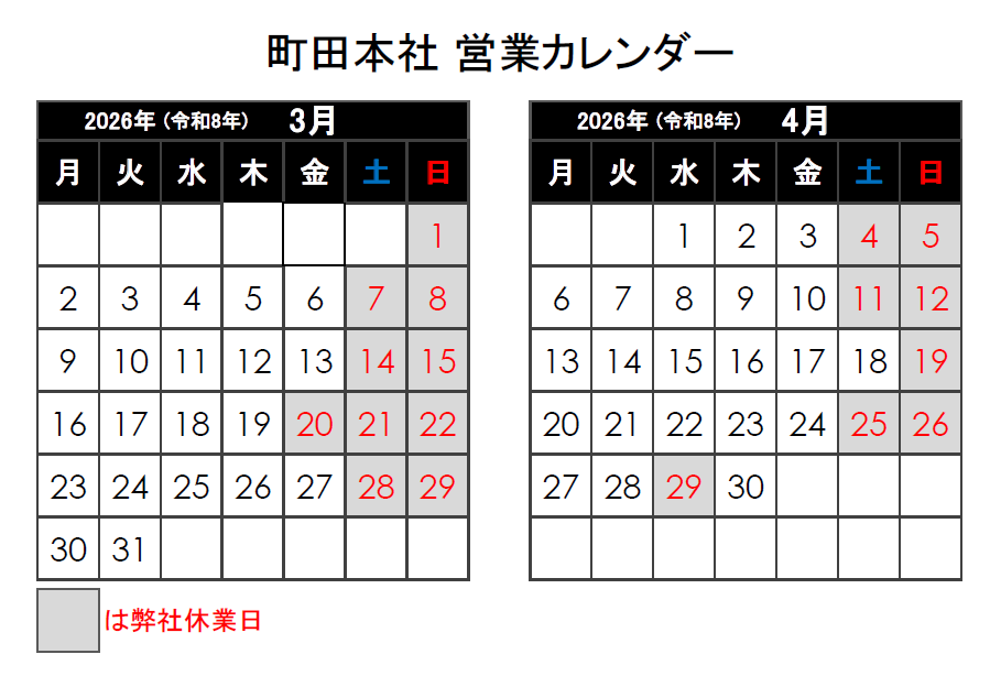 【2026年3月更新】町田本社 営業カレンダー