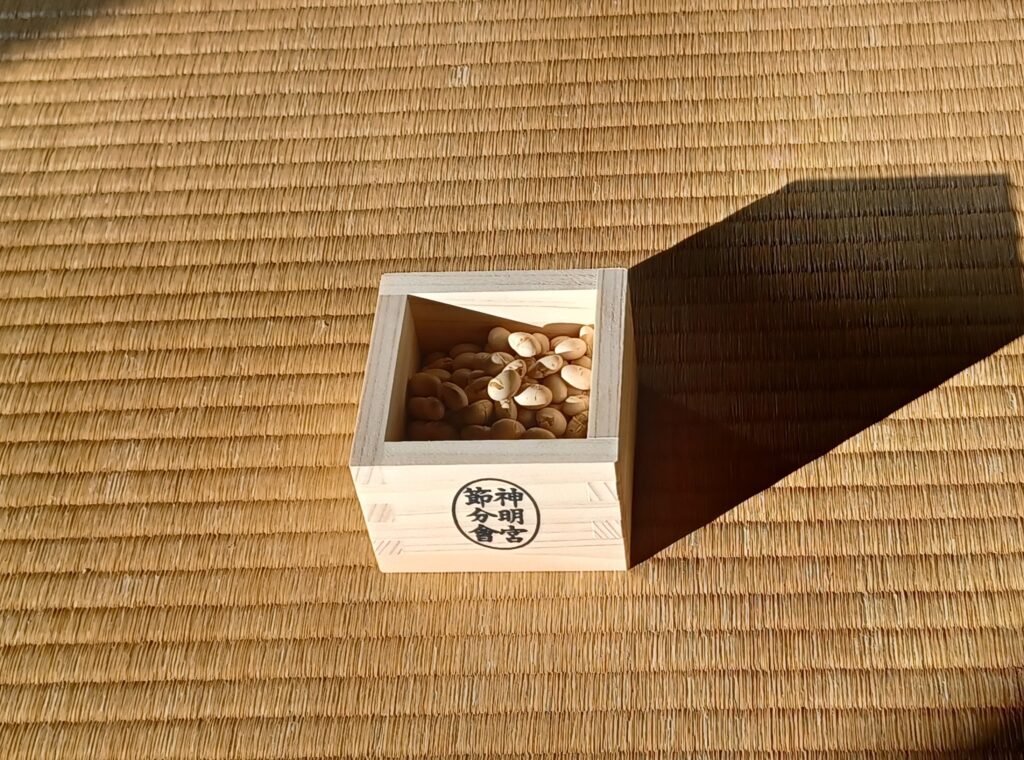 もう一つ欠かせないものは豆まきです。「鬼は外~、福は内~」この声掛けで一気に節分の雰囲気に変わりますね。