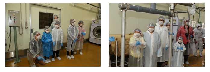 工場内の様子です。白い作業着を着て作業をします。
