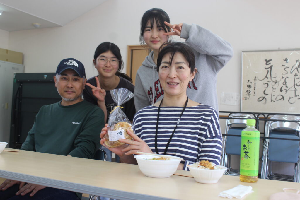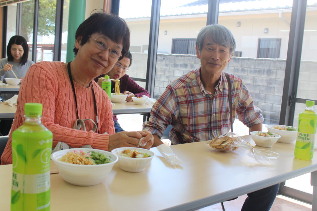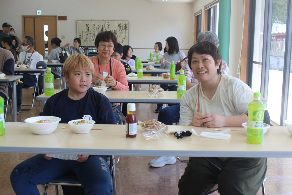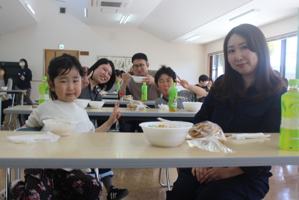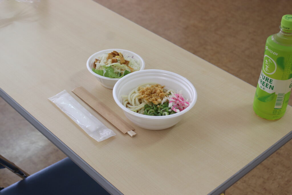 体験会後はお隣のいきいきセンターで軽食を召し上がっていただきました。当社のめんつゆを使用したうどんとサラダになります。