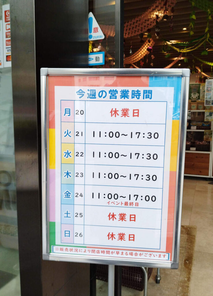 時間:11時~17時半 ※最終日は17時まで